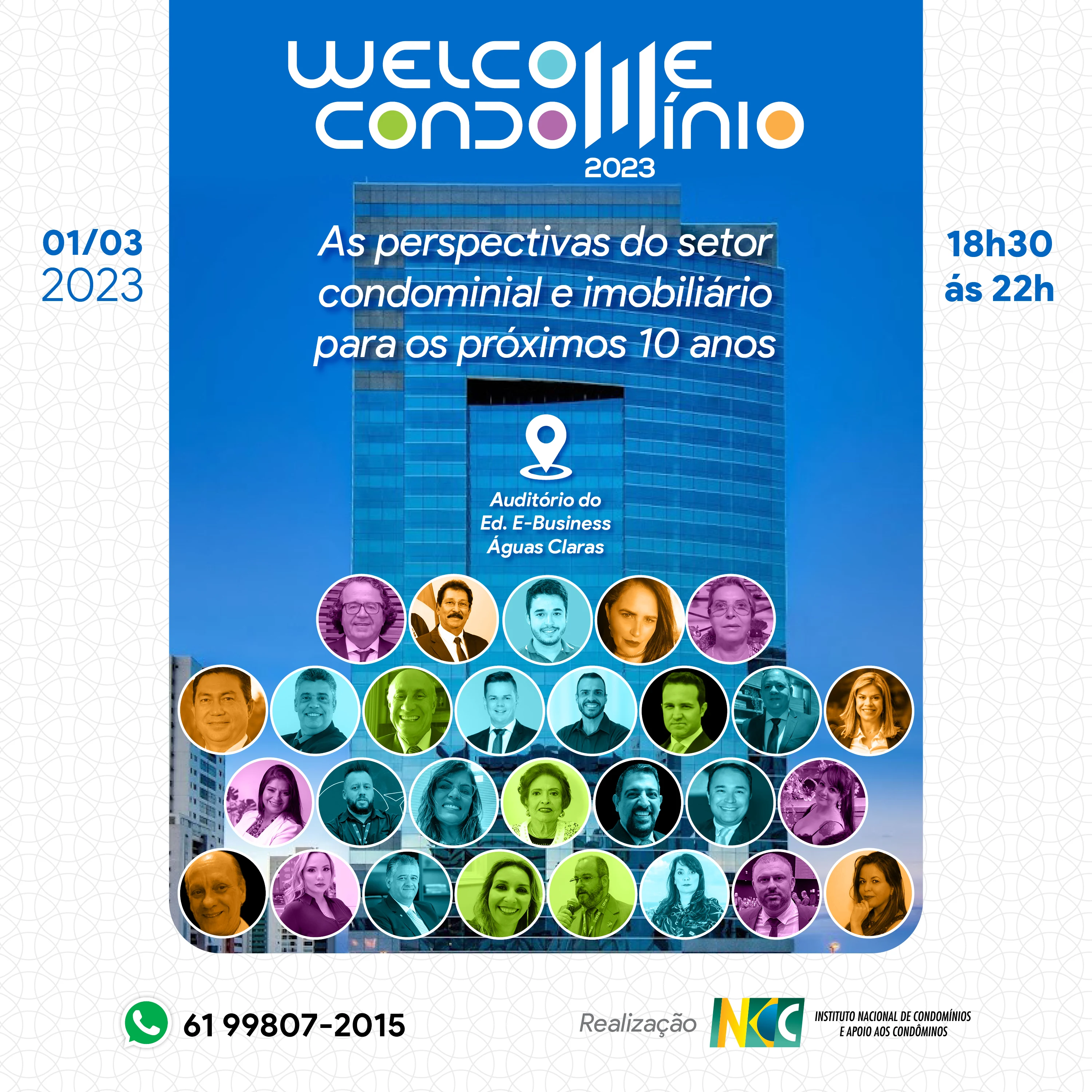 Consagrado por abrir o calendário do setor condominial, o Welcome Condomínio 2023 expande suas fronteiras e estabelece um polo na capital federal para debater as perspectivas do setor condominial e econômico em uma noite disruptiva de conhecimento, que visa suprir as necessidades reais de conhecimento do setor de condomínios.